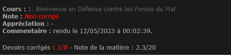 Votre enthousiasme fait plaisir, et vos messages sont superbement décorés. *^* La fin du mois approche grandement et je vais pouvoir vous récompenser en points de maison pour tous vos défis réalisés en mars. Vous pouvez encore modifier votre post mais à partir du 1er avril minuit (dans trente minutes en soi), je vous demanderai de déposer vos preuves dans un nouveau message car ces défis compteront pour le mois d'avril. Je vais de ce pas mettre le récapitulatif à jour et j'en profite pour répondre aux quelques questions d'Avril. Parrainage > Pas besoin de refaire une demande, tu pourras tout simplement faire une capture d'écran du MP qui t'indiquera qui est ton parrain ou ta marraine. Devoir > Tous les devoirs sont notés sur 10 points, mais on peut gagner jusqu'à 10 points boni par devoir, donc on parle souvent d'une note sur 20. Dans le cas de ce défi, il suffit d'avoir au minimum 15 points en comptabilisant points + points boni. |