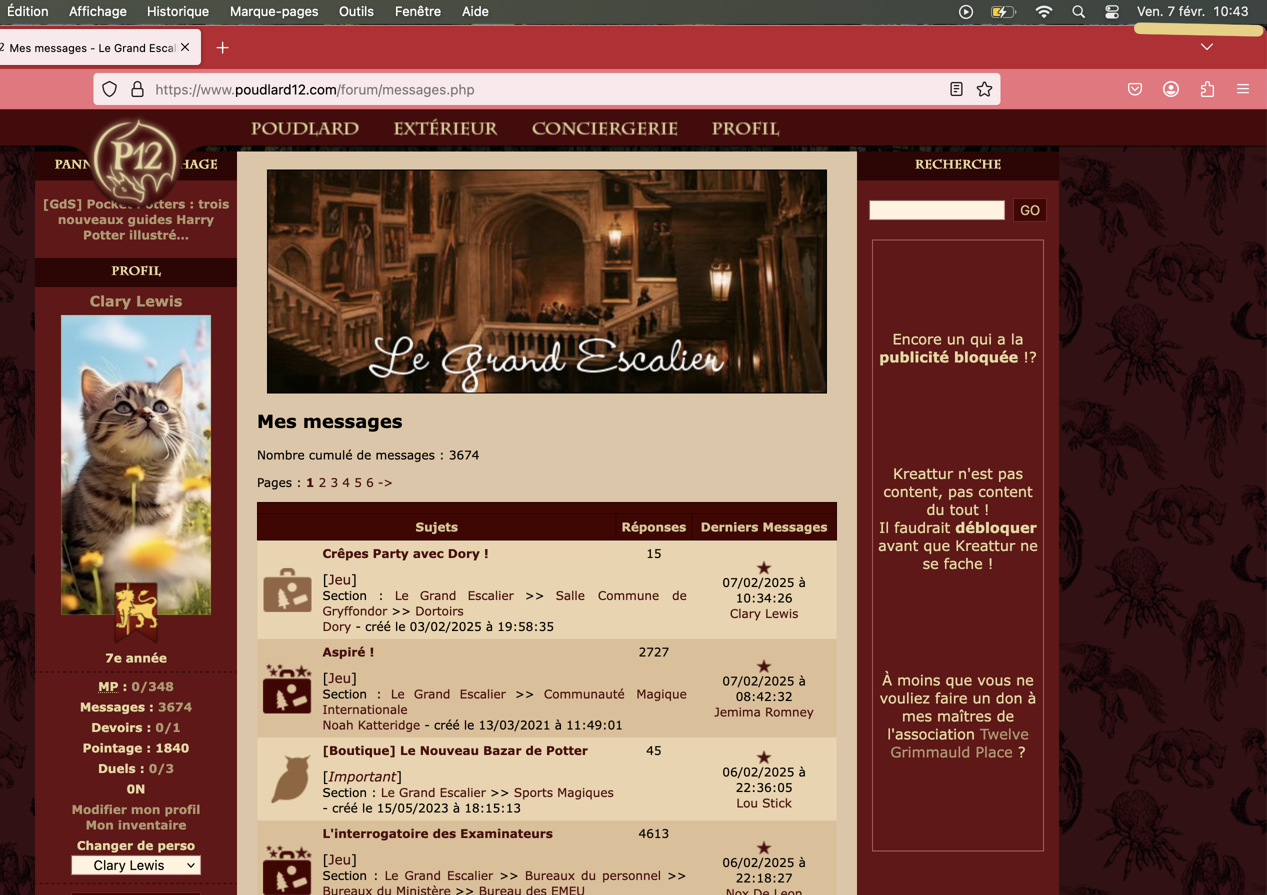 Crockdur Magicorrectrice Reine des coléoptères Millième Fantôme Élue des Tableaux Grande Collectionneuse Bienfaitrice du WHP ![]() ![]() 7e année
