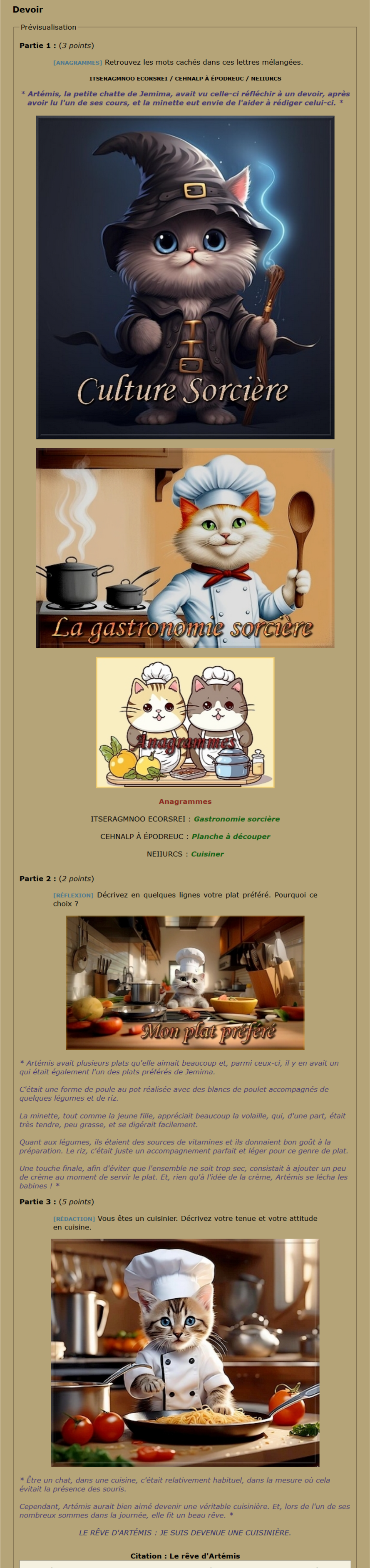 Voici pour le défi suivant que tu m'as donné : Défi #21. Faire de ta créature la star d'un devoir (Artémis). Capture d'écran du devoir avant l'envoi / Preuve d'envoi / Devoir corrigé *****