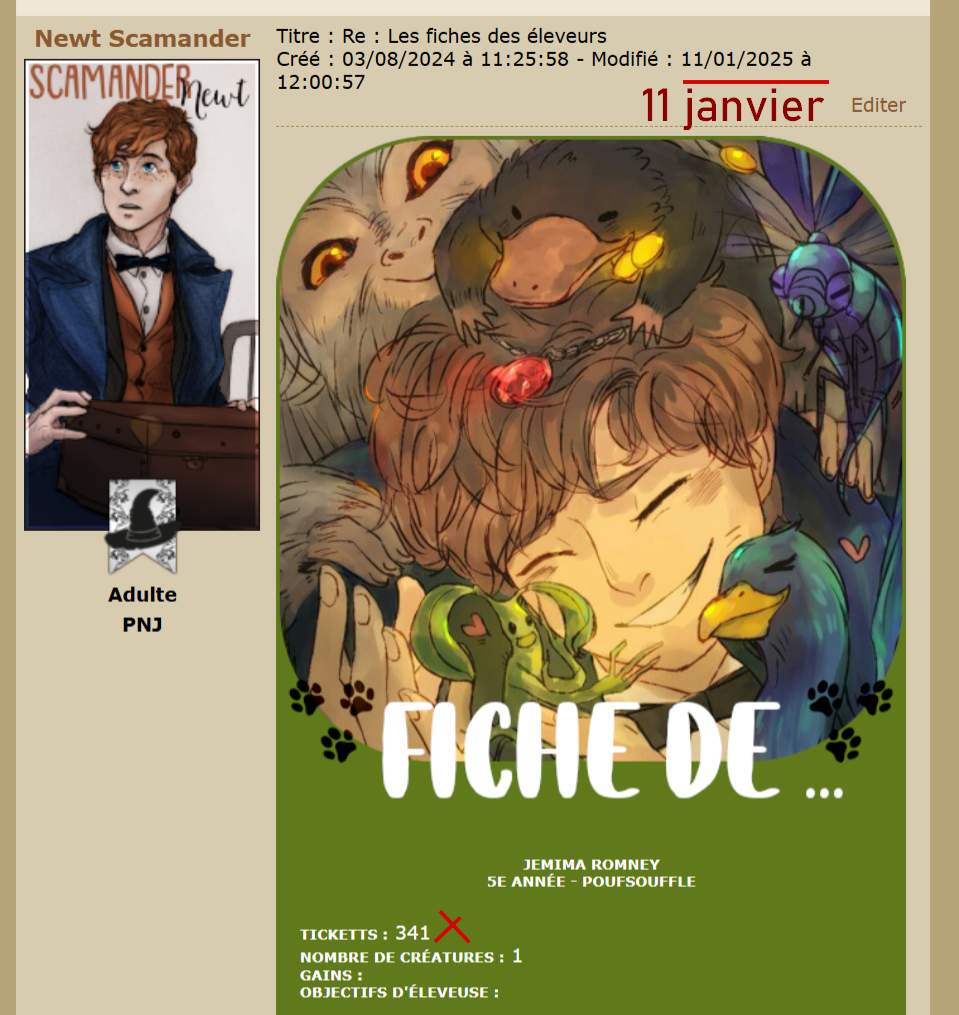 Magizoologiste Serveur Rédacteur ![]() ![]() Adulte