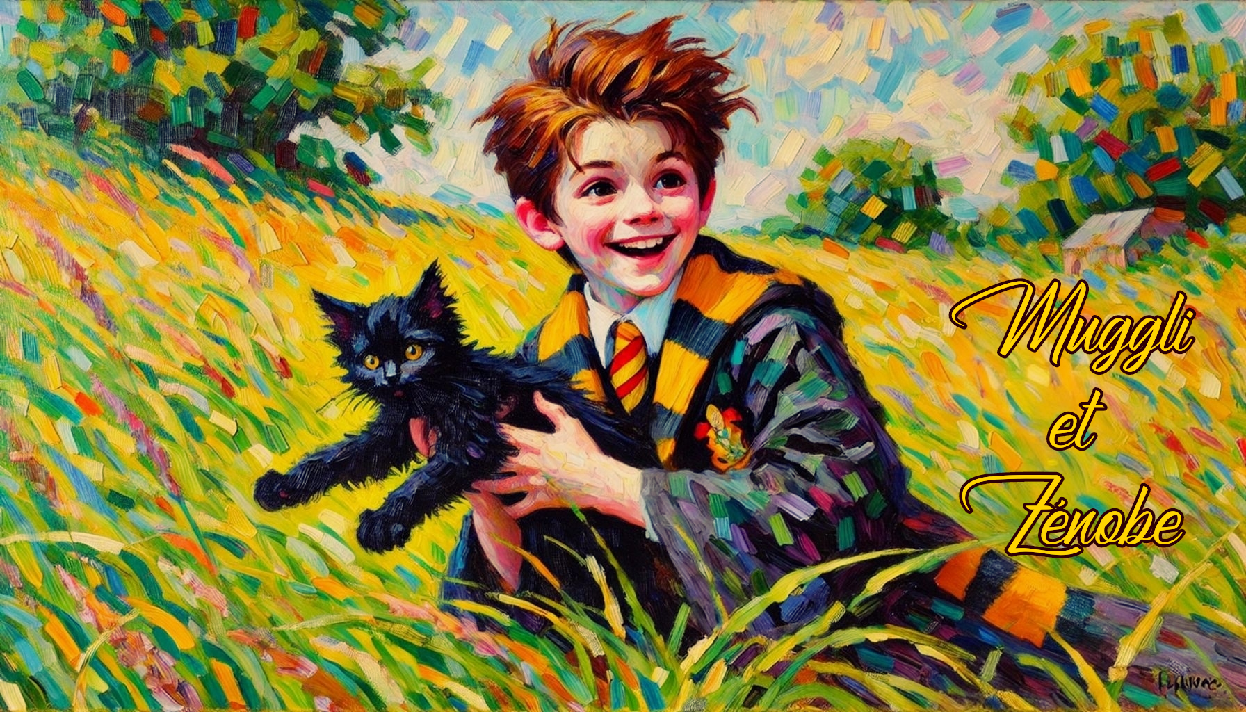 * Il y avait longtemps que Jemima n'était plus venue rendre visite à Artémis, sa petite minette, et la jeune fille s'en voulait d'avoir ainsi négligé son gentil félin. Elle décida donc d'aller se promener avec elle dans le parc où l'on pouvait croiser toutes les sortes de créatures qui vivaient, habitaient dans la Valise de Newt. Artémis était déjà une chatte adulte et elle avait parcouru nombre de lieux différents, rencontré plusieurs sortes de créatures, et elle n'avait absolument pas peur. Cependant, elle était heureuse de se promener en compagnie de son éleveuse qu'elle n'avait plus vue depuis un bon moment. Alors que celle-ci s'installait sur un banc du parc et qu'elle déballait quelques friandises que les elfes de la cuisine lui avaient données pour Artémis, la petite chatte vint se frotter à Jemima en ronronnant. L'Irlandaise caressa affectueusement la tête d'Artémis tout en lui donnant de petits morceaux de poulets qu'elle avait ramenés des cuisines. Et elle en profita pour rassurer sa gentille chatte. * - Tu sais, mon Artémis chérie, combien je t'aime ! Je ne pourrais jamais t'abandonner ! Tu m'as toujours fais confiance et c'est important que je te redises à quel point tu comptes pour moi. Je pense à toi chaque jour et, chaque jour, je me dis que je dois venir ici, et passer un moment avec toi. Mais c'est parfois difficile de se libérer quand on doit assister à des cours et étudier aussi. Et, dans ces moments-là, tu me manques énormément ! Bientôt, j'espère pouvoir venir plus souvent, et t'apporter ce que les elfes des cuisines donnent volontiers, lorsque je leur explique que c'est pour toi, ma gentille et douce Artémis ! Et même si je n'apporte aucune friandise, on ira se promener ensemble, et jouer, ou bien dormir ! Ce serait chouette de se retrouver plus souvent ! * Artémis comprenait ce que Jemima lui expliquait, la jeune fille en était certaine. Lorsque la minette eut fini de se délecter des petits morceaux de poulet, elle vint poser sa tête sur les genoux de son éleveuse et ronronna autant que c'était possible ! Ce que cela faisait du bien, ces retrouvailles ! * M.G. + 9 Ticketts Fière marraine de Colin Vance