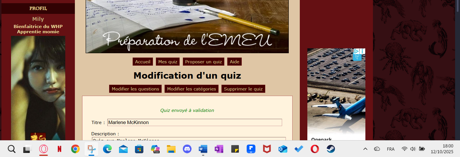 Créé : 10/10/2025 à 01:12:08 - Modifié : 12/10/2025 à 16:57:31 je hurle à ton taff pour qu'il te laisse tranquille !! tous les topics que tu as choisi me vont hugh, donc je viens donner les quelques preuves nécessaires du coup à ma participation :