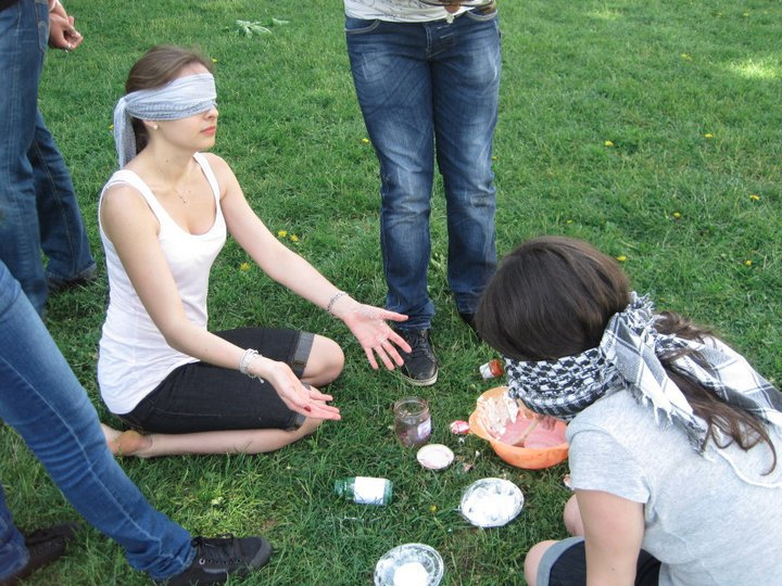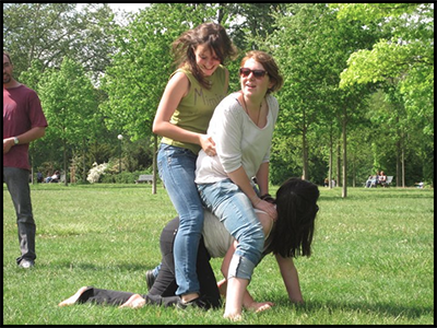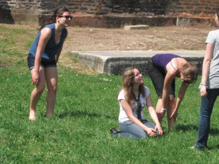 La cinquième et dernière épreuve de la journée consistait à effectuer un parcours le plus rapidement possible. Entre roulades, limbo, tournoiements autour d'un bâton, sauts à pieds joints et chutes, nous avons également eut droit à des magnifiques fous-rires. Les épreuves se sont terminées là mais les jeux se sont enchaînés (le pan-pan qui était destiné à faire connaître les prénoms des uns des autres et l'épervier qui devait juste nous épuiser). Le tout fut achevé par une petite photo de groupe.