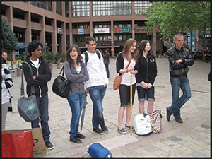 Après avoir petit-déjeuné chez Wendy et pour de nombreuses personnes, pris des douches à l'arrache, nous avons tous cavalé en direction de la gare. Alexandra a cassé les pieds de tout le monde pour avoir un café Starbucks avant de grimper dans le bus. Bref, tout le monde était regroupé sous l'horloge de la gare avec la fameuse pancarte d'accueil.