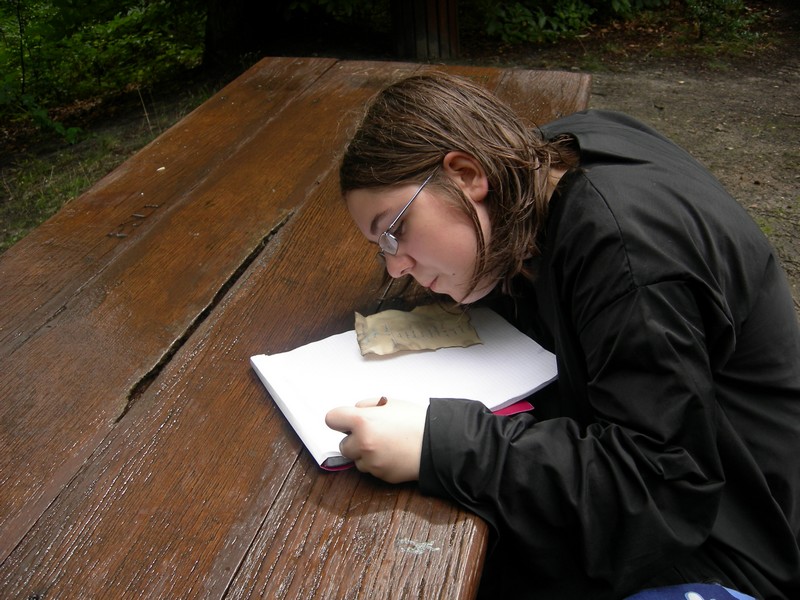 étude des runes (un sudoku runique), la pluie commence à tomber de plus en plus fort, si bien que les P12iens sont contraints de ramasser en toute hâte capes, souaffle et sacs pour aller se réfugier dans le garage de Tuxette.